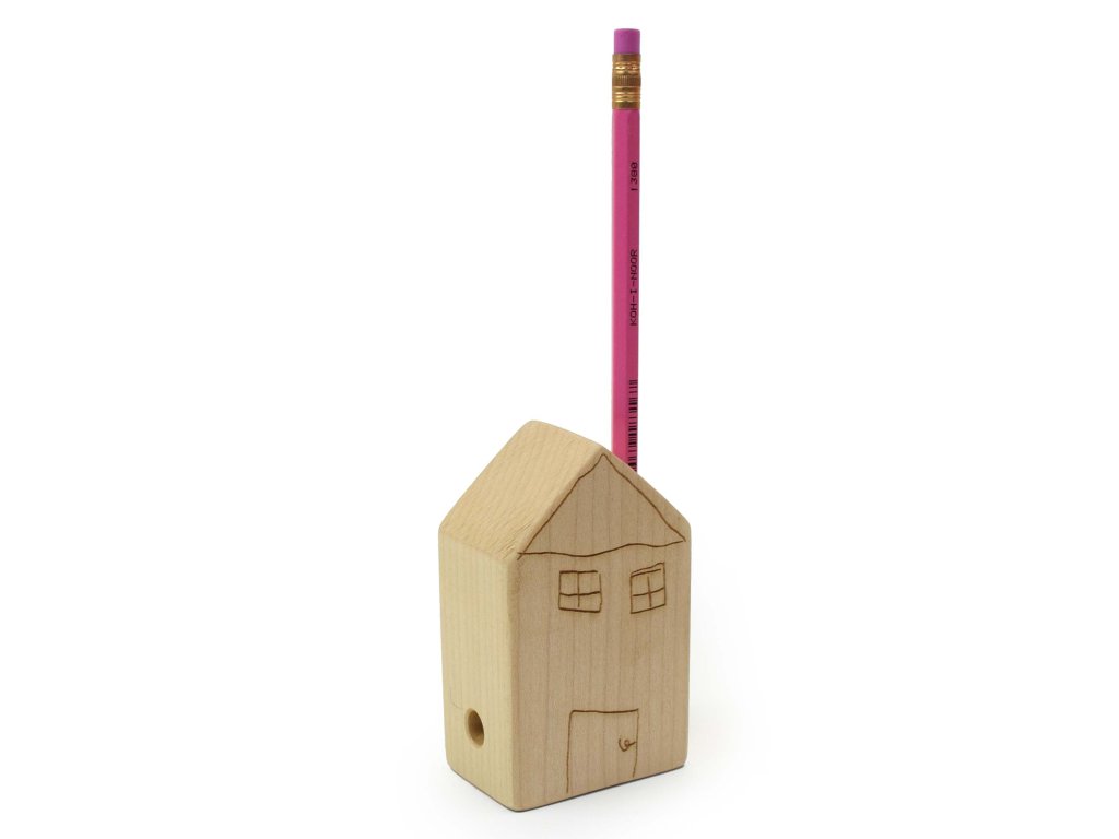Domeček je vyroben z dřeva listnatého stromu, ručně opracován rašplováním, broušením. Povrchová úprava olej a vosk, Vložené ořezávátko je kovové.