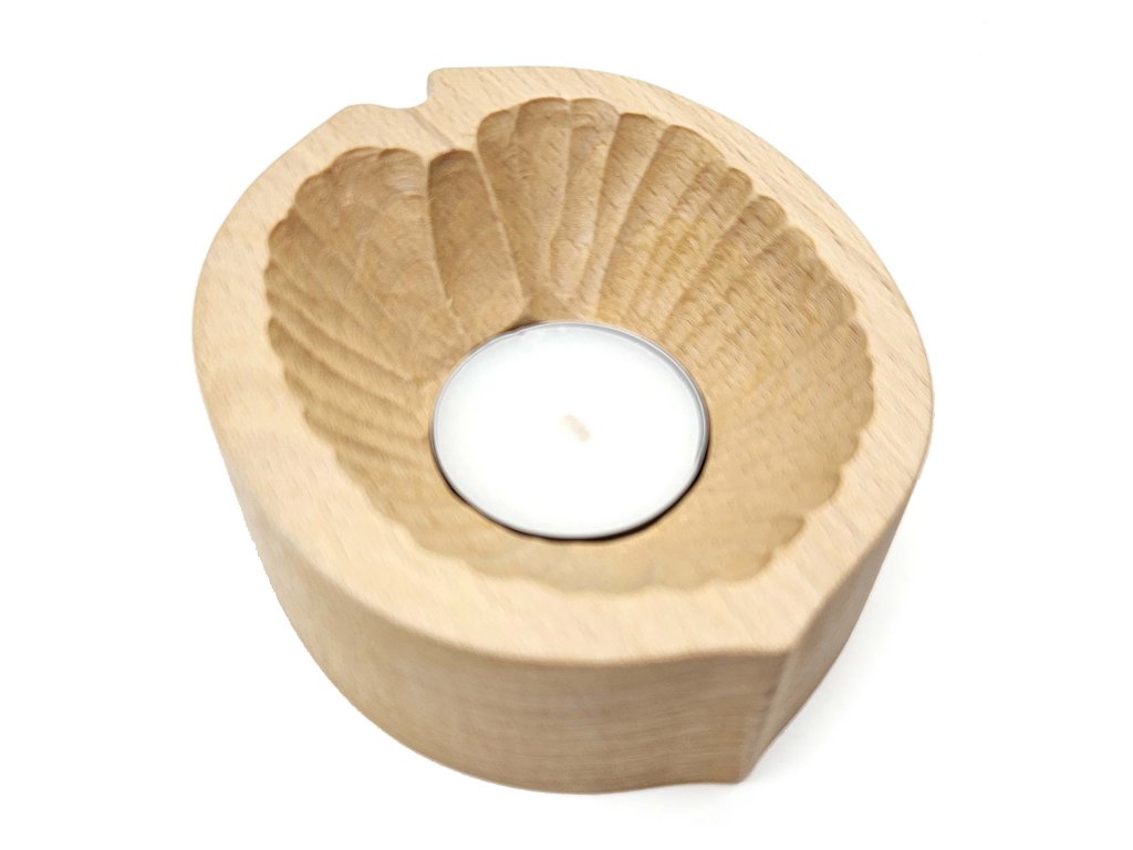 Svícen je vyroben z listnatého tvrdého dřeva, ručně opracován rašplováním, broušením, dlabáním. Povrchová úprava olej+vosk